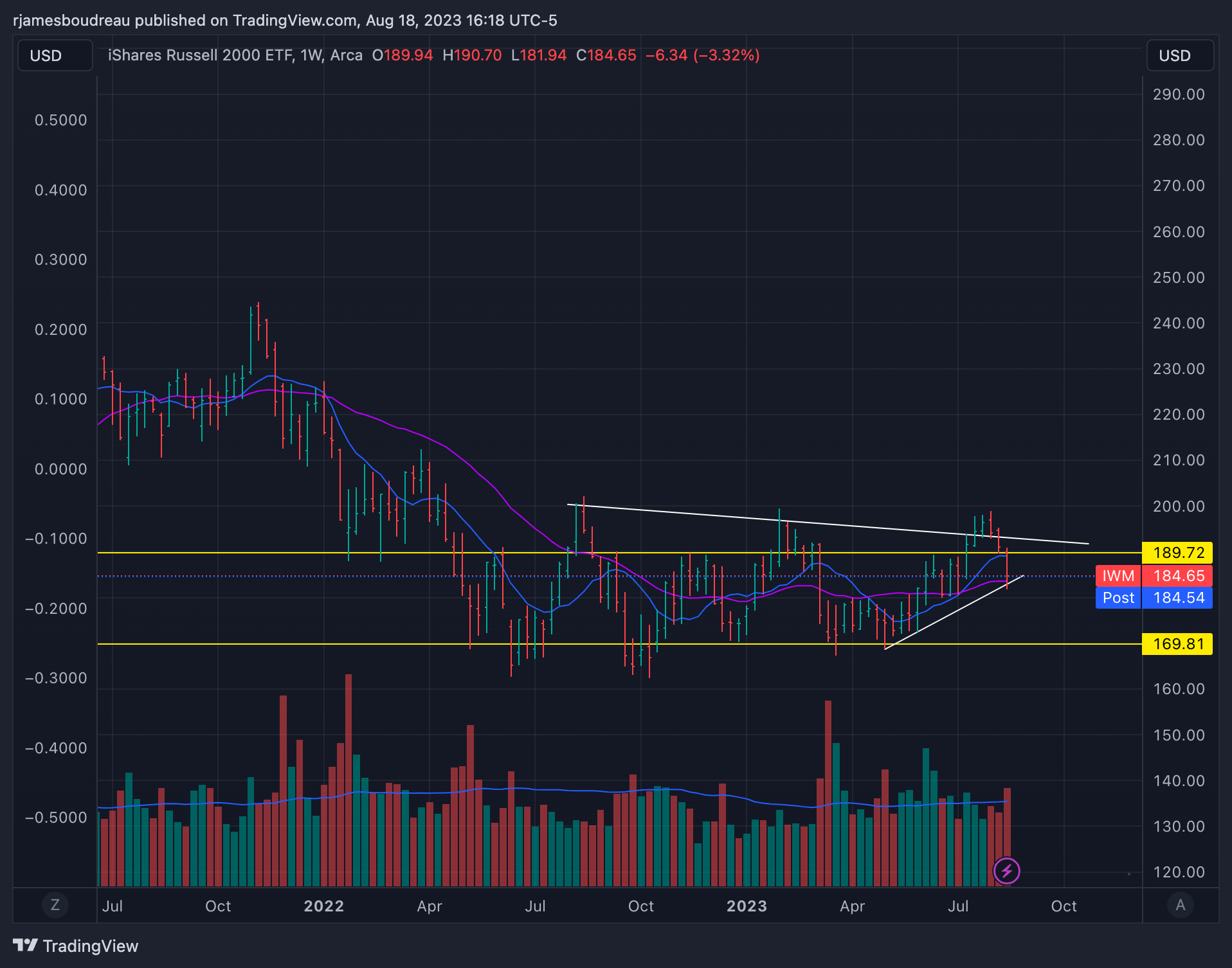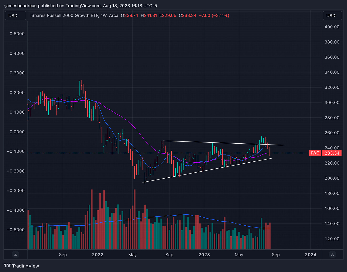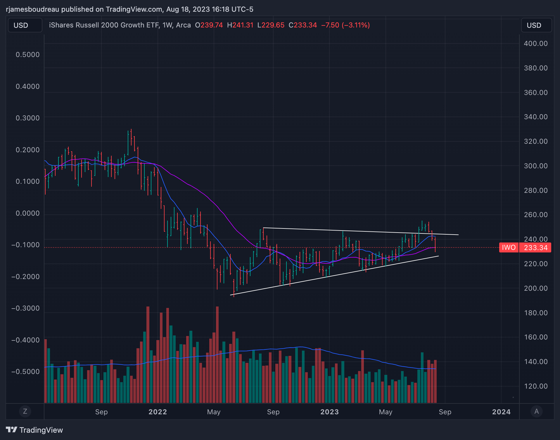IWO had a rough week losing over 3%. This closed right at its 30 week moving average.