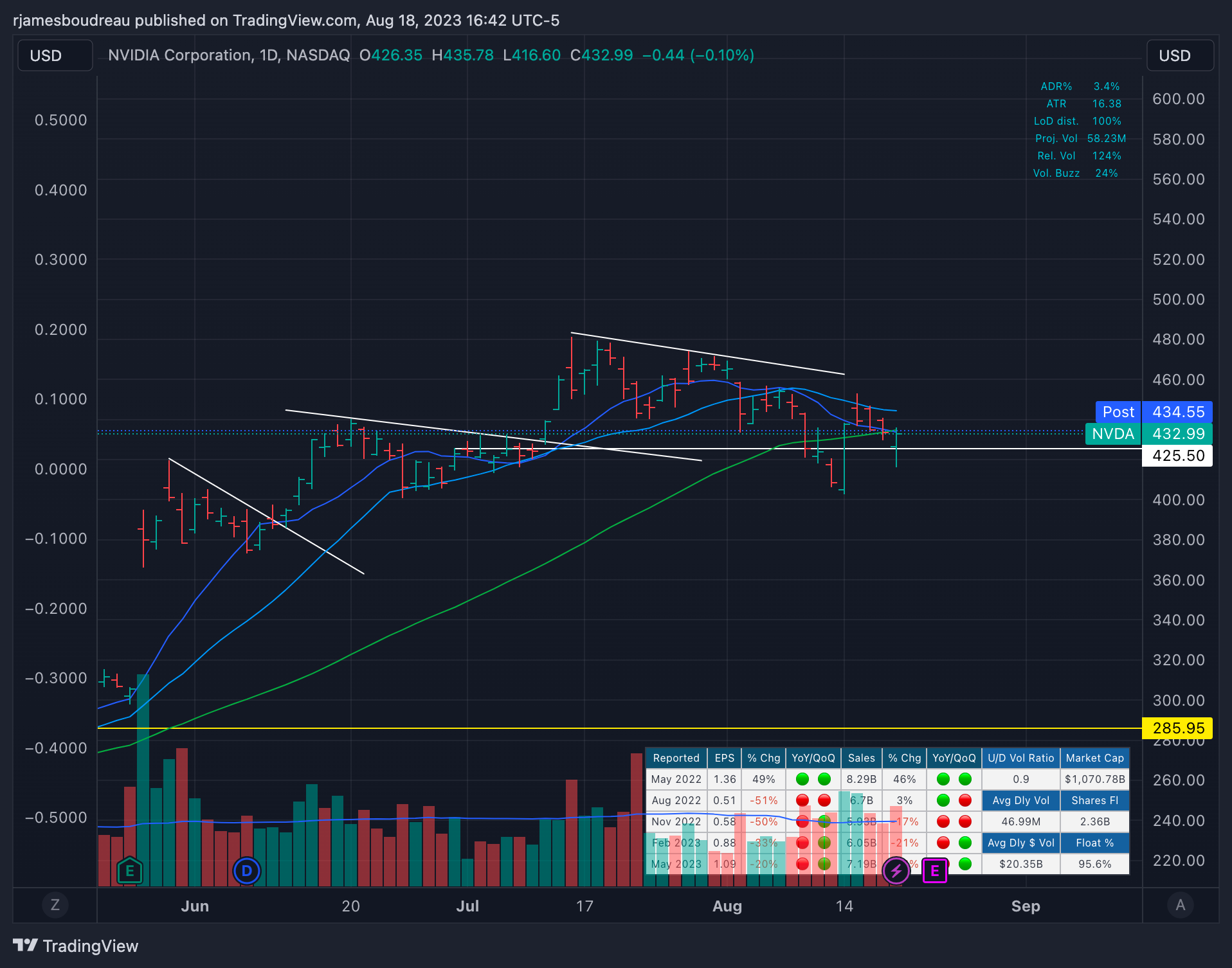 Earnings are Wednesday after market close and everyone is going to be watching to see the reaction. Personally, I would like a sell off so we can bottom and then have a good clean uptrend. If the reaction is very strong and we gap up, it will be harder to get positioned and likely a lot of chop or whipsaw action afterwards.