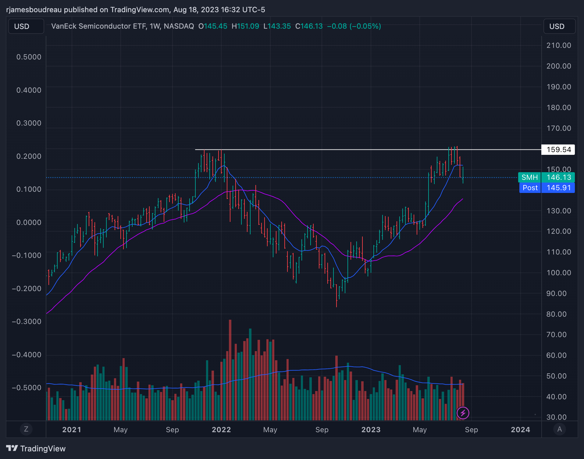 A large component of SMH is NVDA. This has certainly been a leading stock this year as it is certain to be the big beneficiary of the AI explosion.