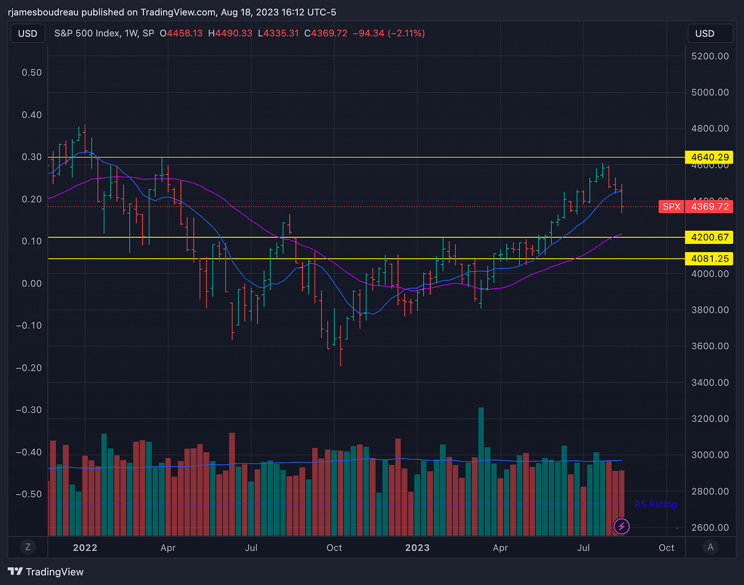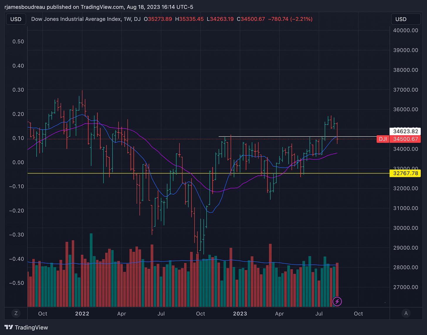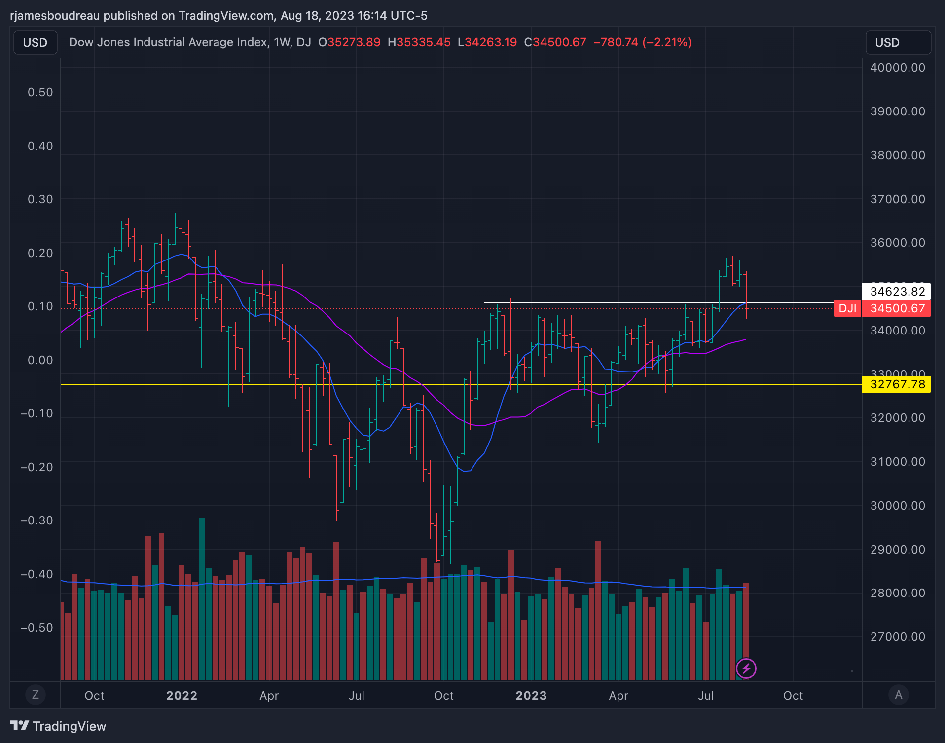 The Dow Jones was holding up the past couple weeks, however that changed this week as it also corrected more than 2%. It also closed below the 34600 level.