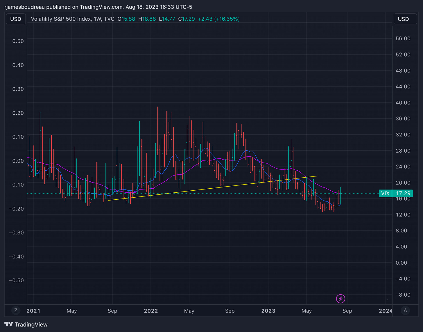 Last week I noted that I did not think the VIX will stay down after the big down week last week and it gained it all back gaining over 16%.